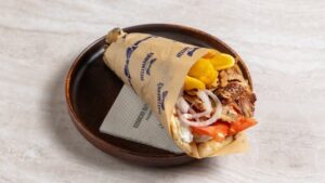Pork Gyros* (Pita, Potatoes, Tomato, Onion, Tzatziki)