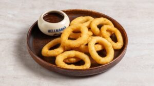 (Τραγανές ροδέλες κρεμμυδιού, παναρισμένες σε γαλέτα, σε μίνι και παιχνιδιάρικη μορφή μπουκίτσας,
