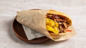 Meat Patty (Pita, Potatoes, Tomato, Onion, Tzatziki)